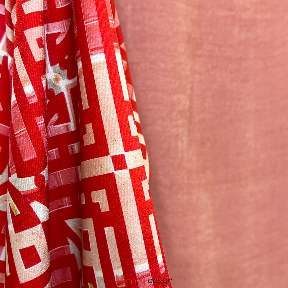 Digital and velvet scarf - HND19.213V PINK ( 2 sides )