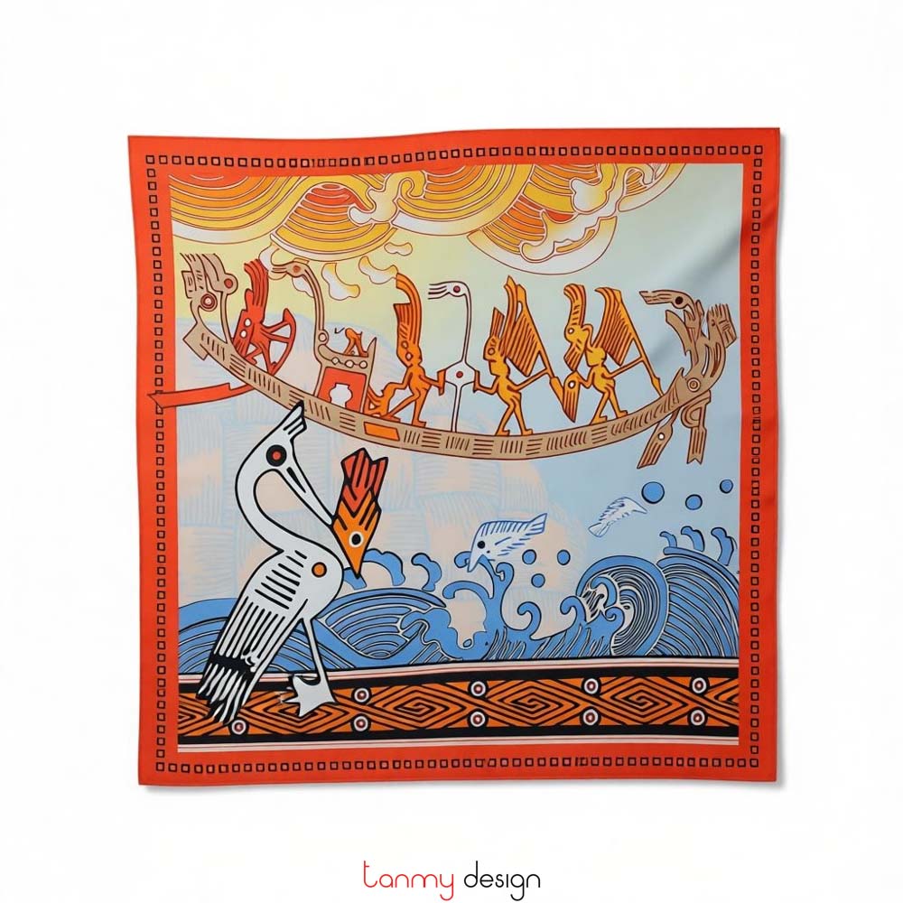Silk scarf -“Millennia of Color” - Orange 90x90cm