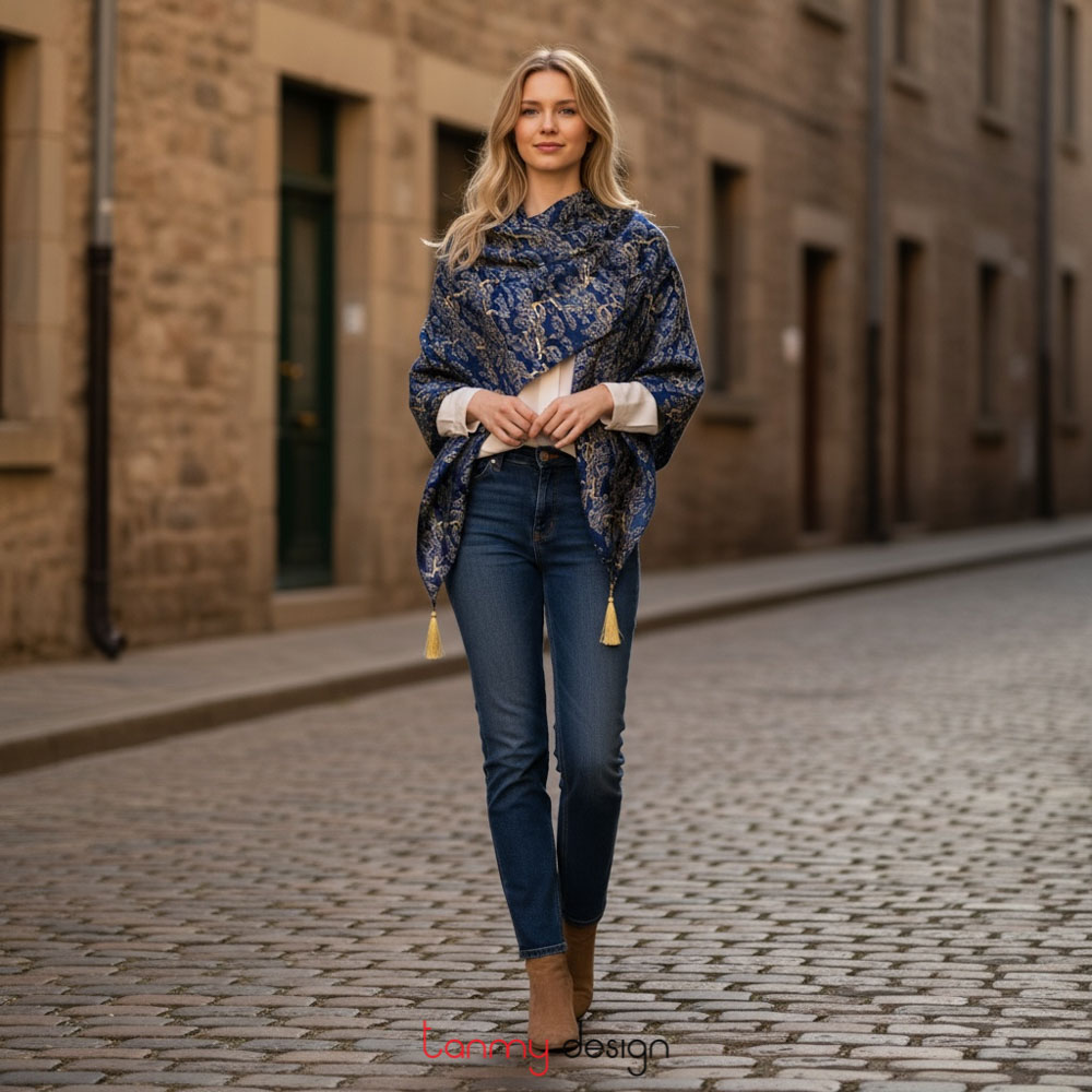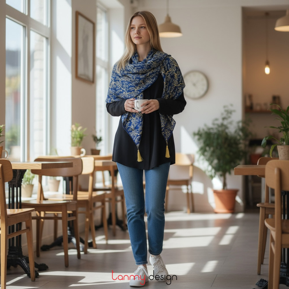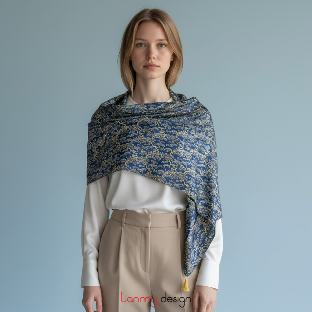 Silk scarf TIMESQUARE - PEARLWOOD INDIGO 90*100cm