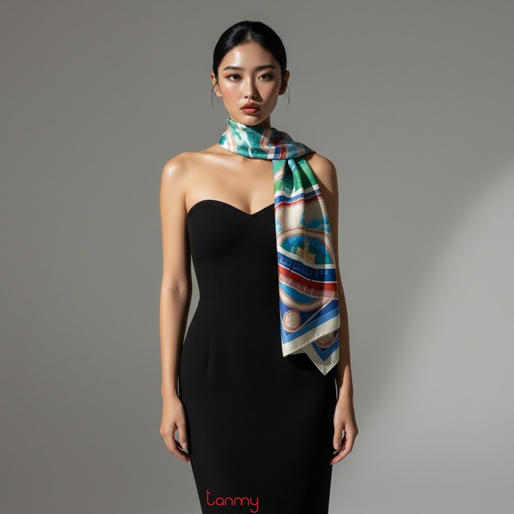 Silk scarf with The Reunification Express pattern (Size 70*70cm : 749,000vnd)