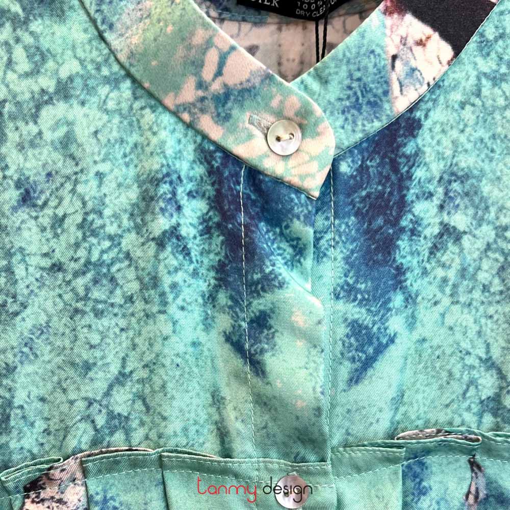 Mandarin collar silk shirt
