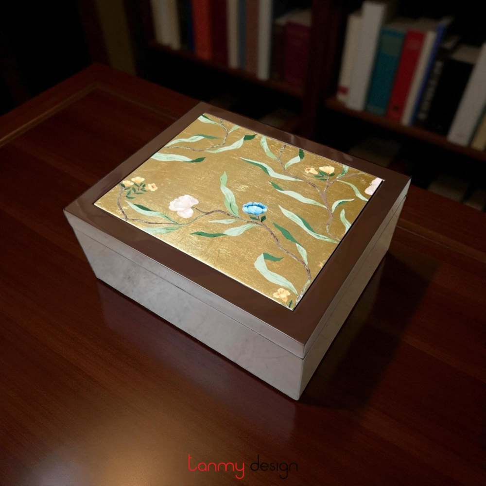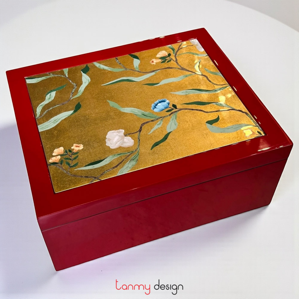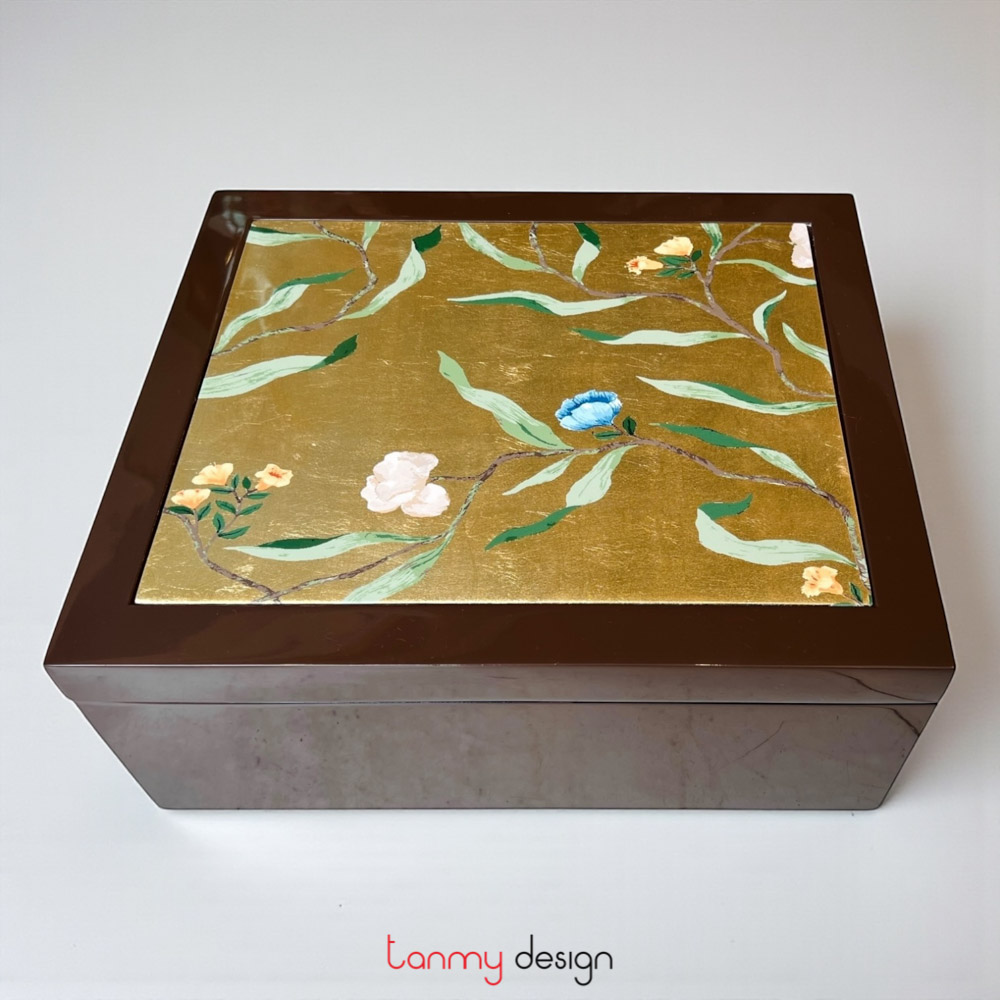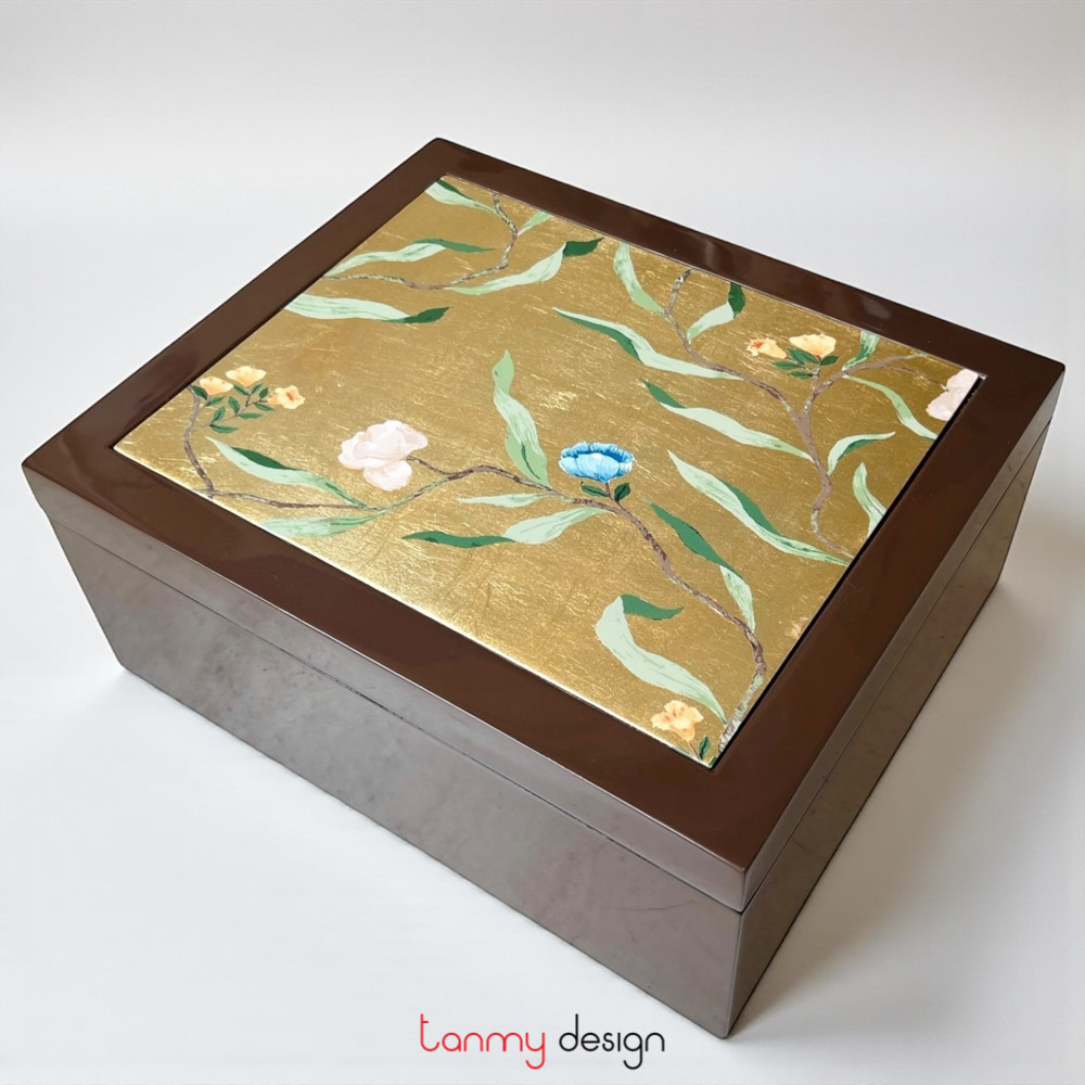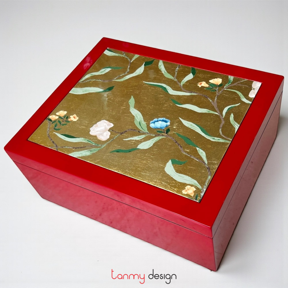 Rectangle lacquer box with flowers 29*35*H14 cm ( different colors )