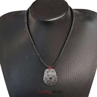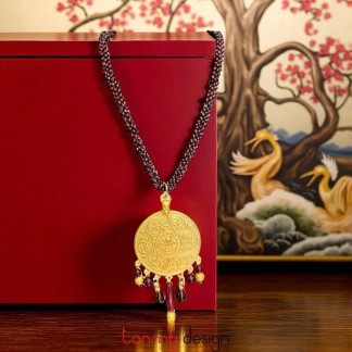 Necklace designed with Garnet, round gold metal Pendant and glass teardrop beads