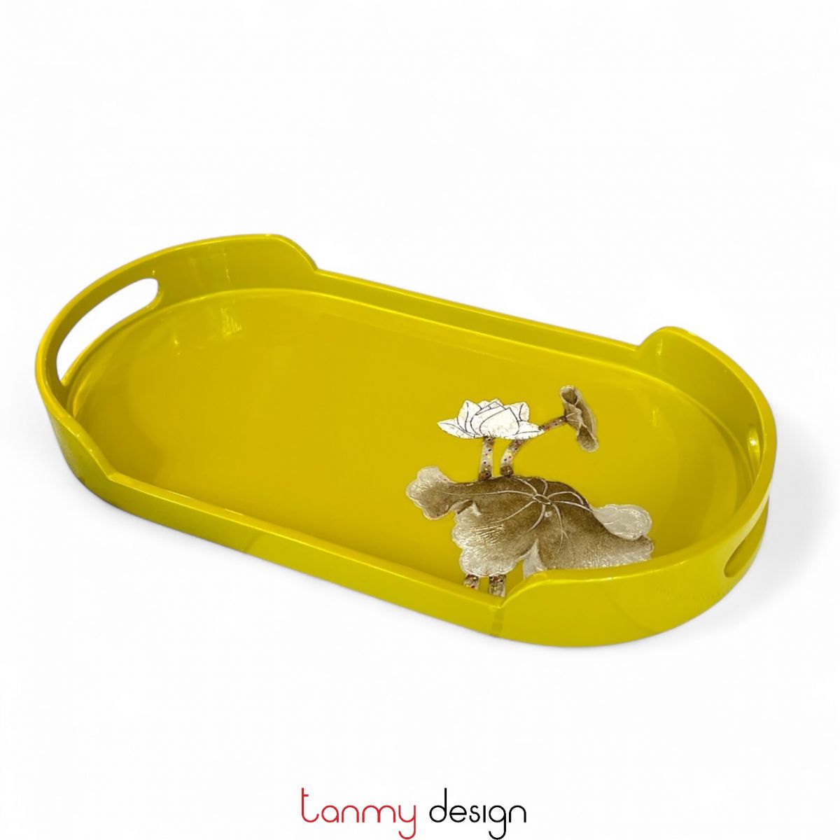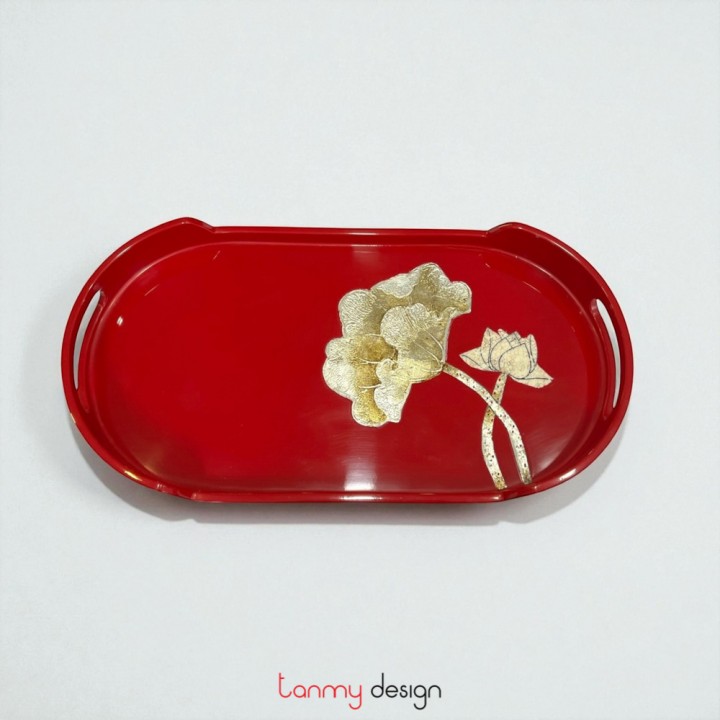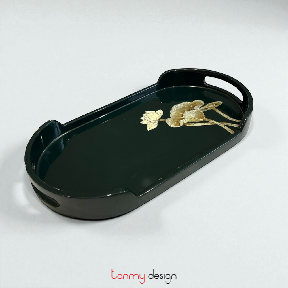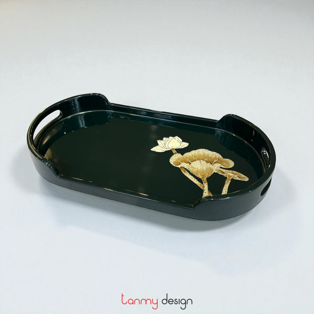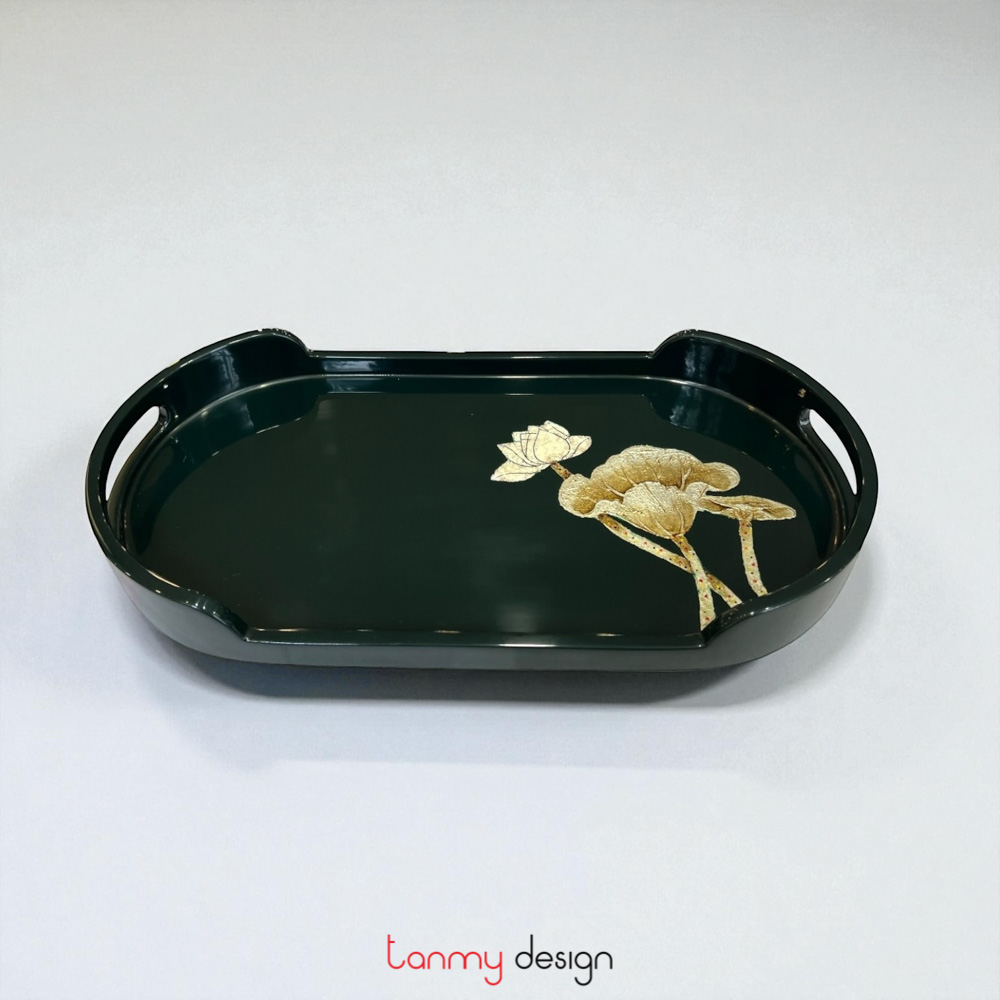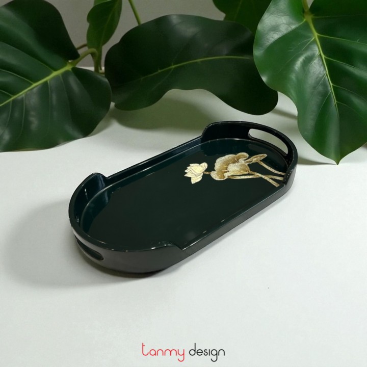 Oval lacquer tray hand-painted with eggshell lotus 19*35cm