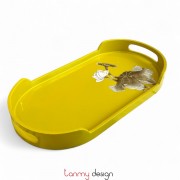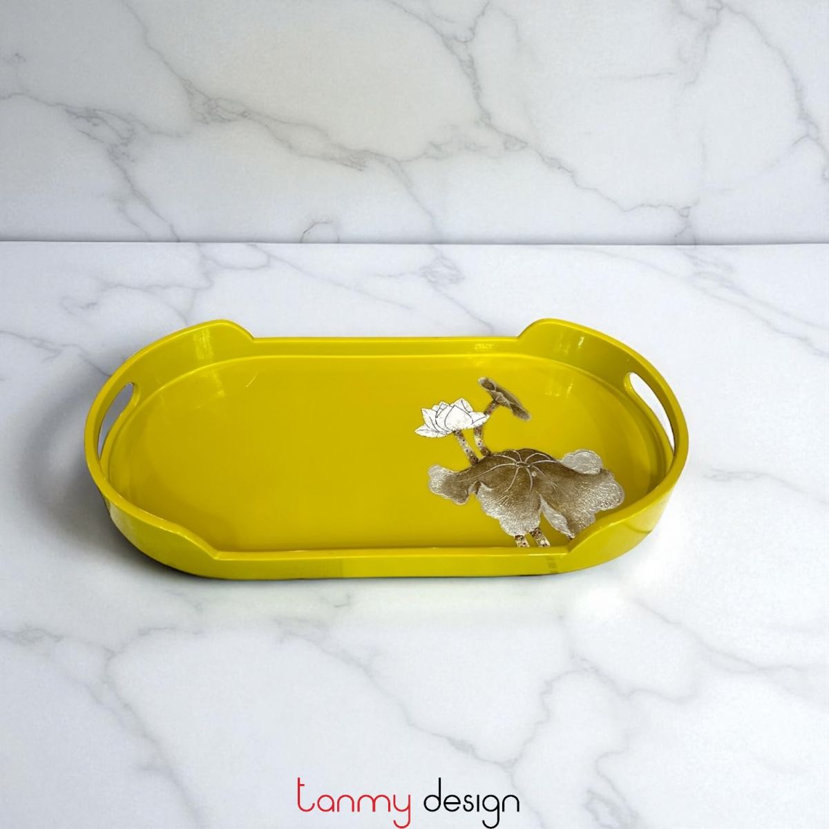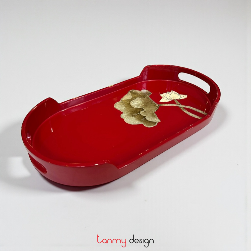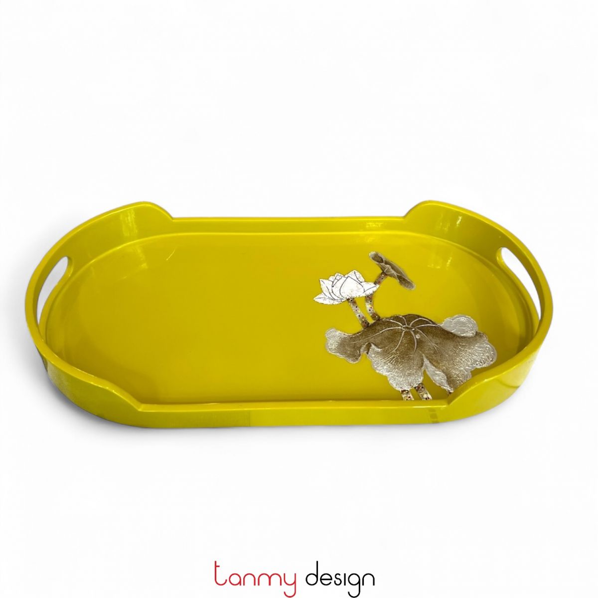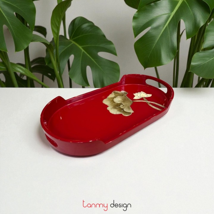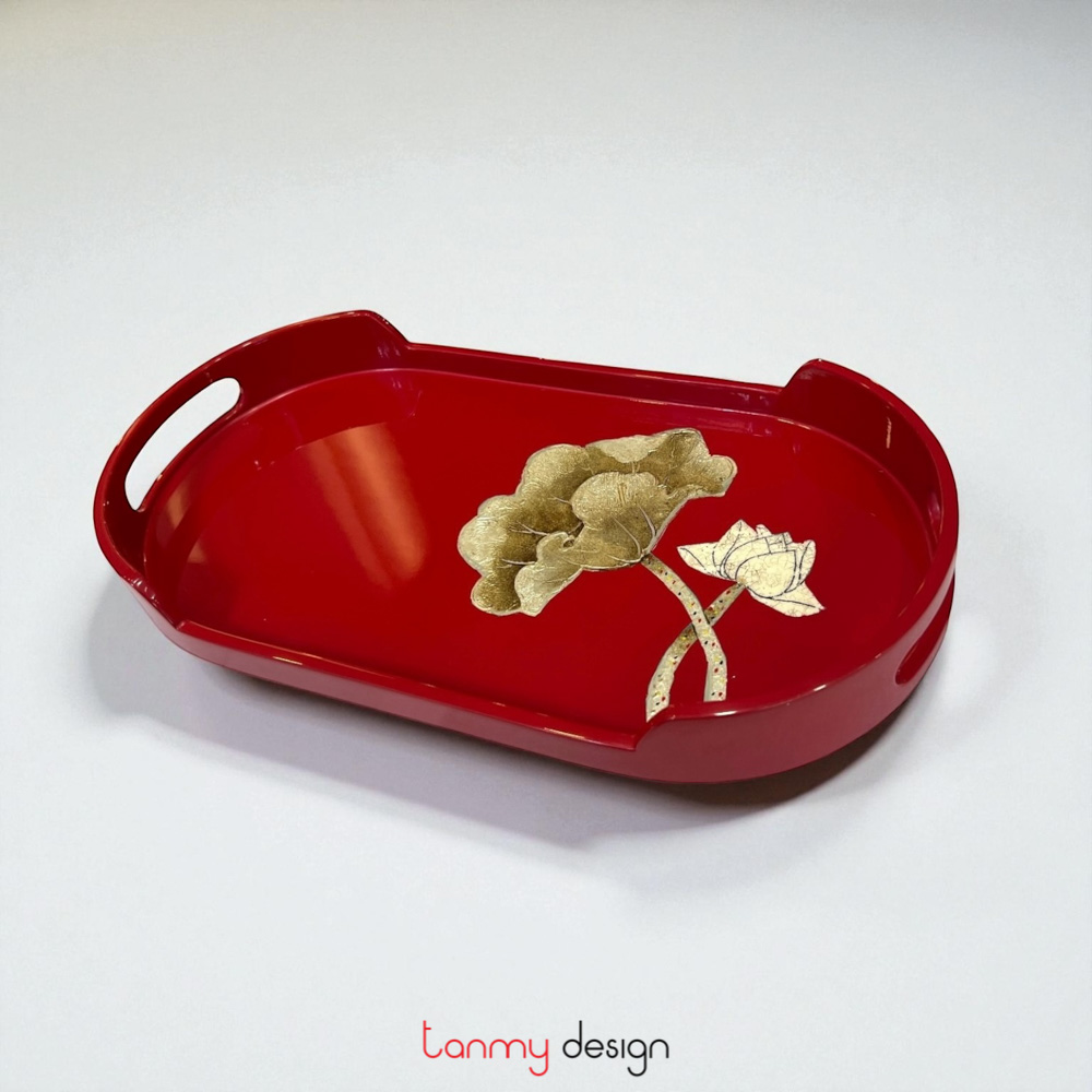 Oval lacquer tray hand-painted with eggshell lotus 19*35cm