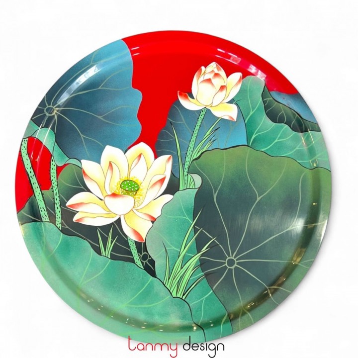 Round lacquer tray hand-painted with flowers 30cm ( different designs )
