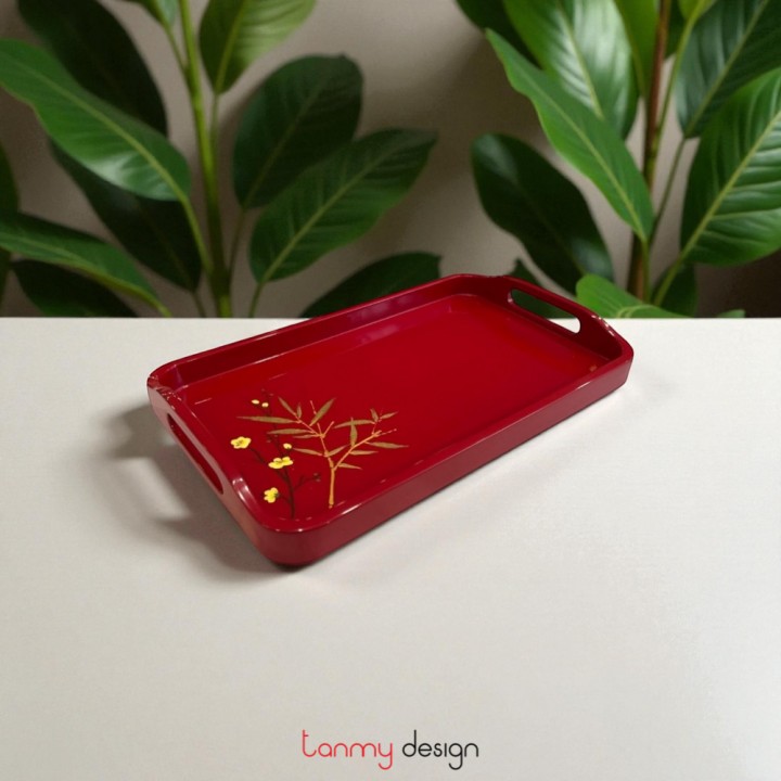 Small rectangle lacquer tray hand-painted with leaves 15*25cm ( different designs )