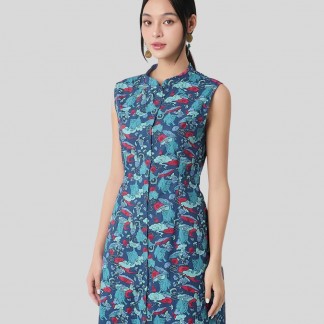 Blue dress with whale emboidery