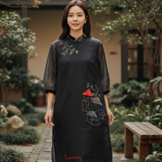 Old Quarter–embroidered black linen dress