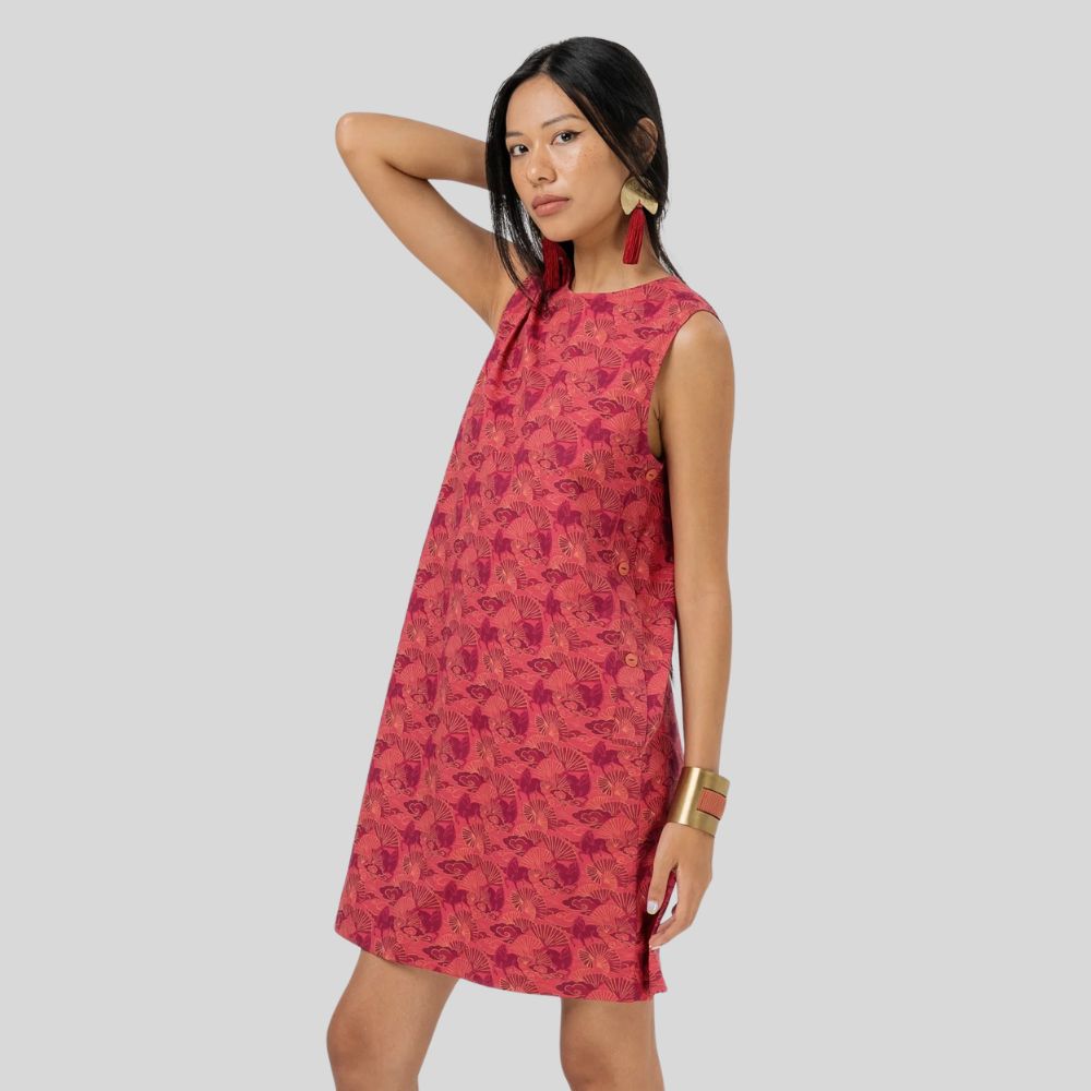 A must-have babydoll dress with a retro '70s A-line cut. Adorned with button details, it captures the essence of vintage elegance. The round neck and comfortable armholes ensure ease and versatility, while its half-thigh length adds a playful touch to your ensemble. The center back zipper allows for easy fitting, making VELA as practical as it is chic.