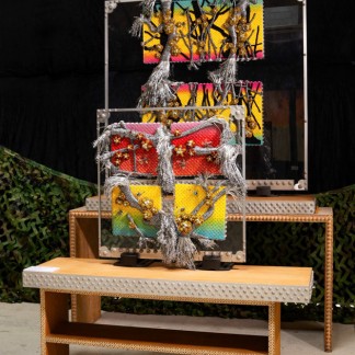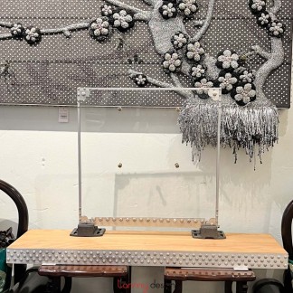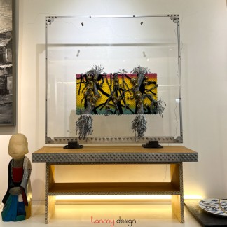 Mai Lam transparent acrylic sign with wooden and brass stand 60x60cm
