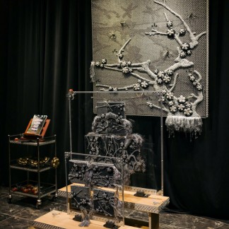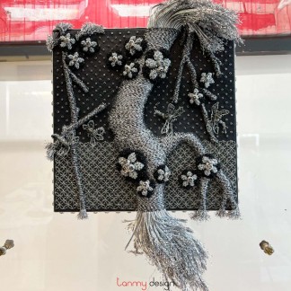 Black - grey spring apricot blossom garden at night 147x147x7cm