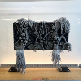 Miniature black - grey spring apricot blossom garden at night 60x30x3 cm ( the price is not included with the stand set )