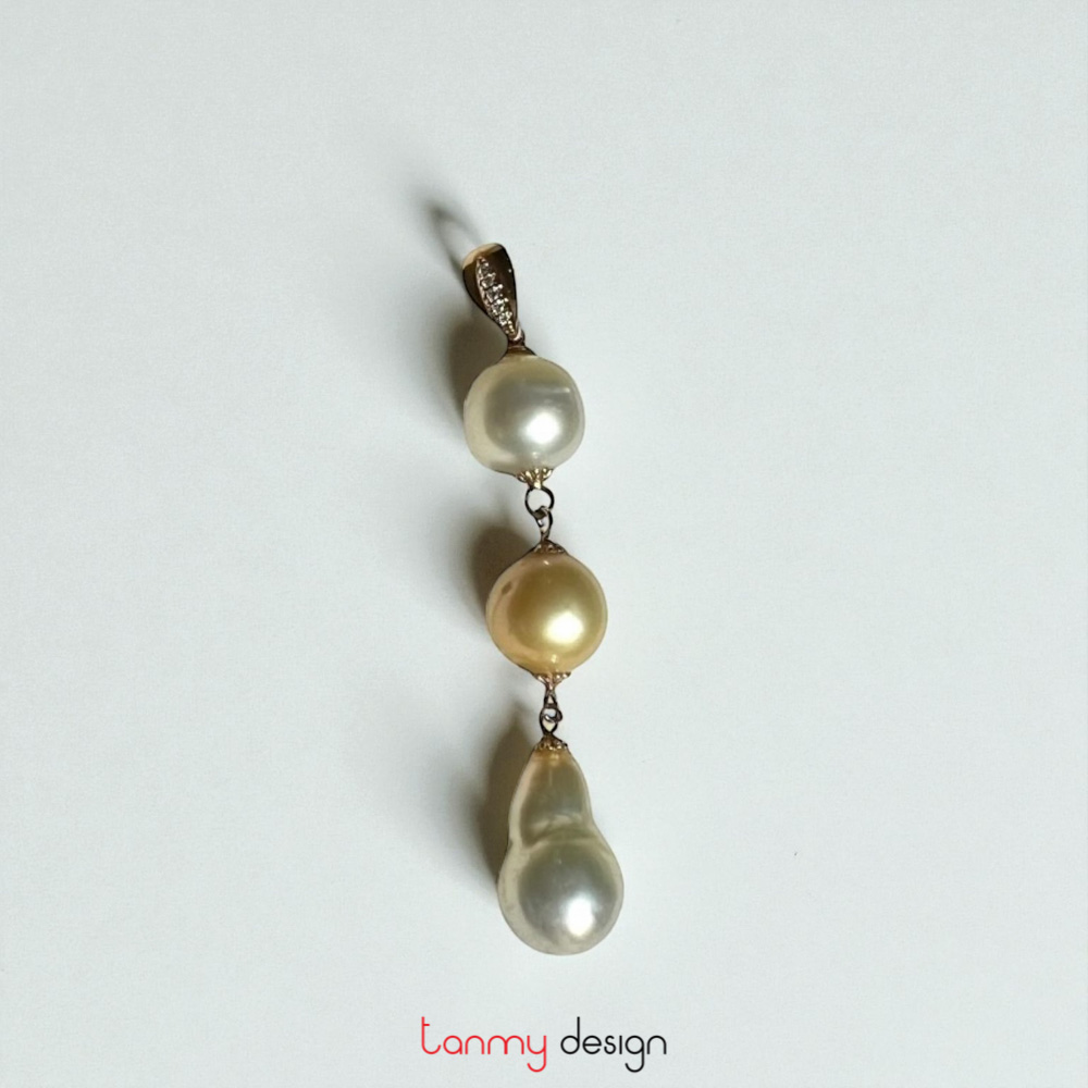 18k gold 3- pearl pendant with diamonds