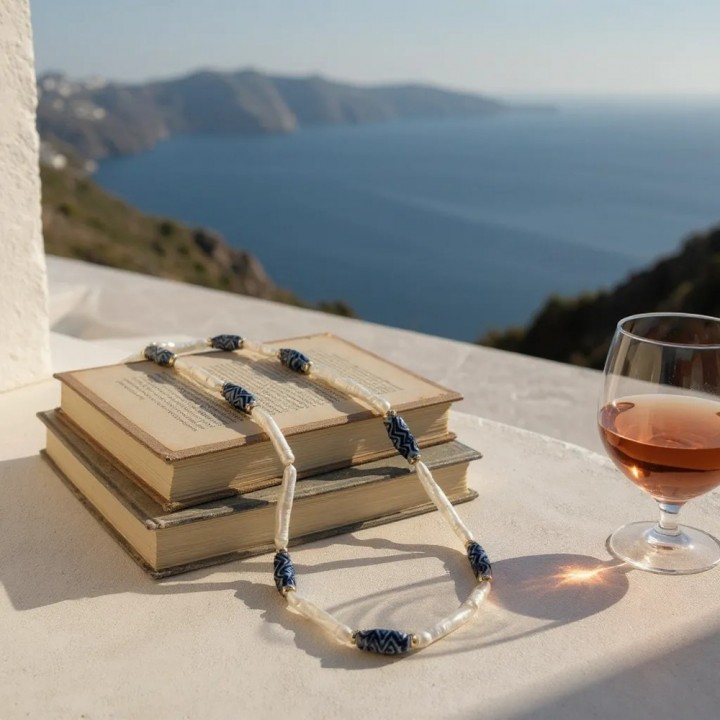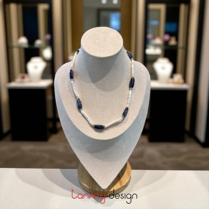 Long Ceramic and Pearl Necklace