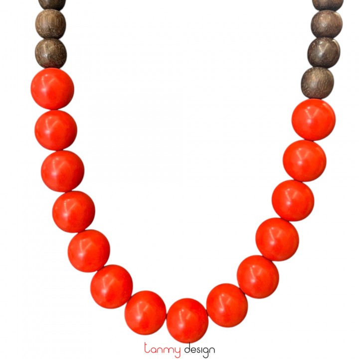 Necklace with Senna siamea and red coral