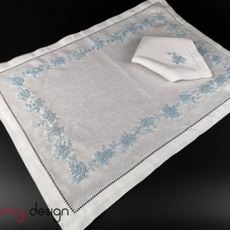 Placemat & Napkin set -baby mimosa flower embroidery (white/blue)