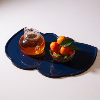 Dark blue lacquer tray with shape of peach blossom -No 2 - 45x30cm