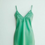A soft satin silk nightdress lull you into a sweet dream. Also, appropiate length help you easily move during sleeping, especially, short fringe on the top makes you sleep as a beauty.