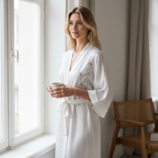 Silk embroidered night robe with daisy embroidery
