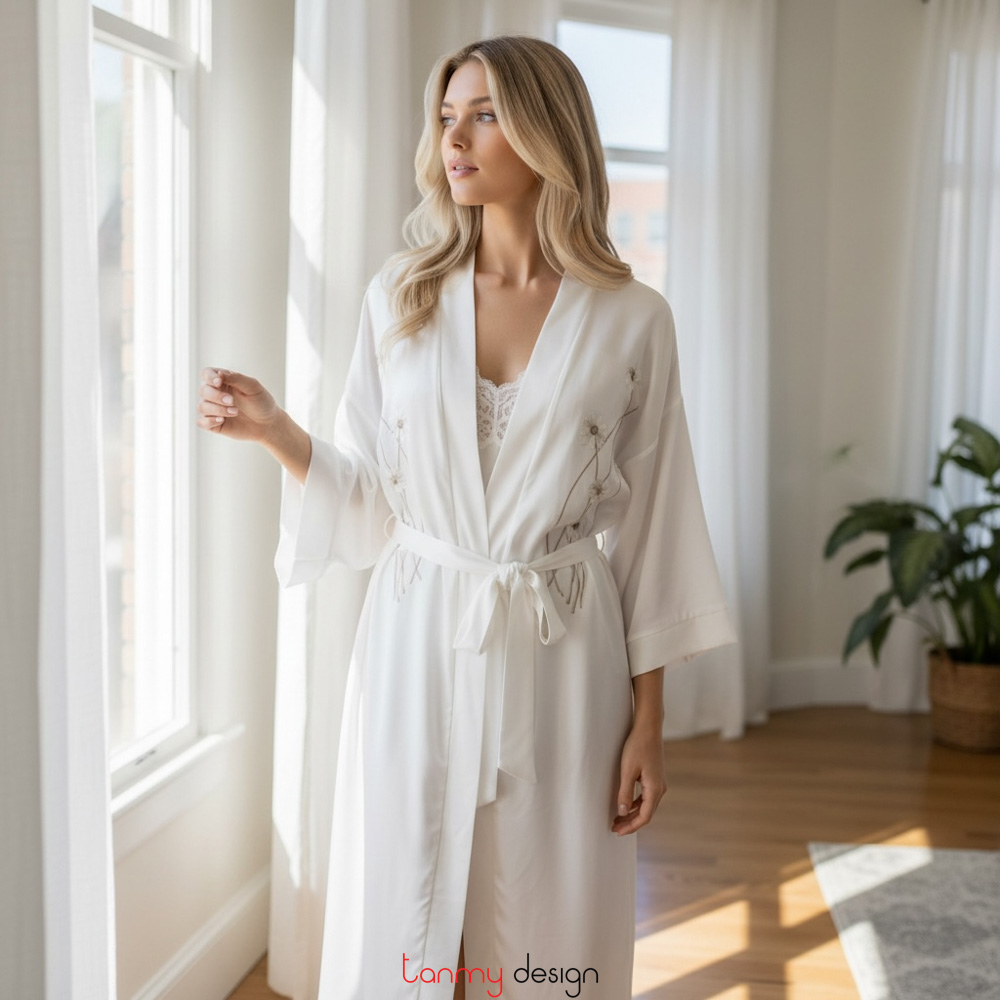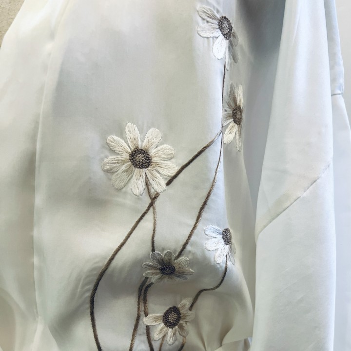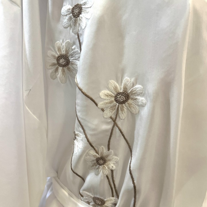 Silk embroidered night robe with daisy embroidery