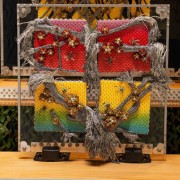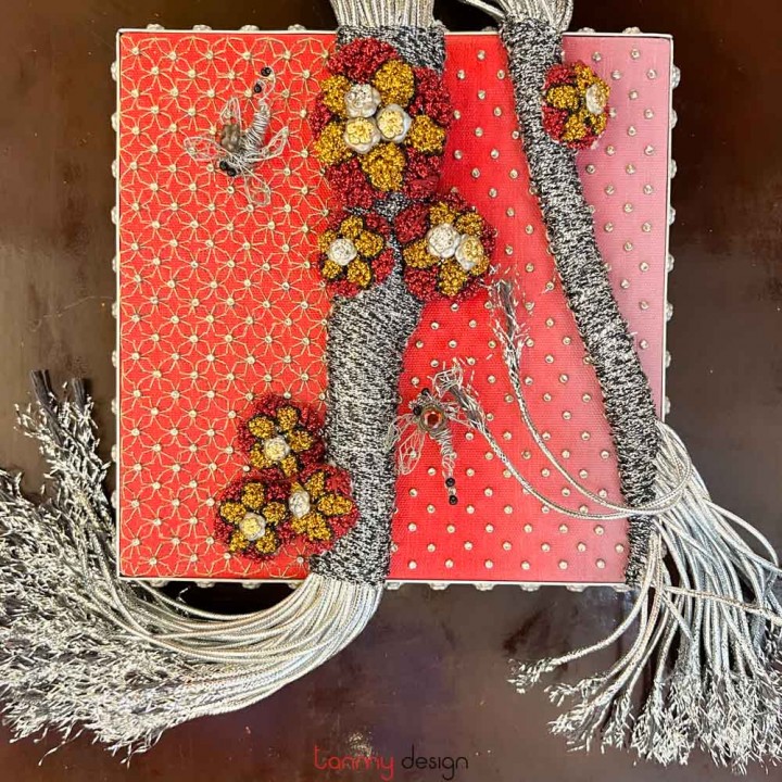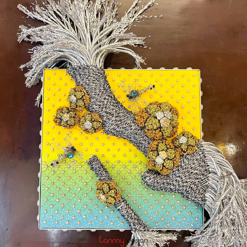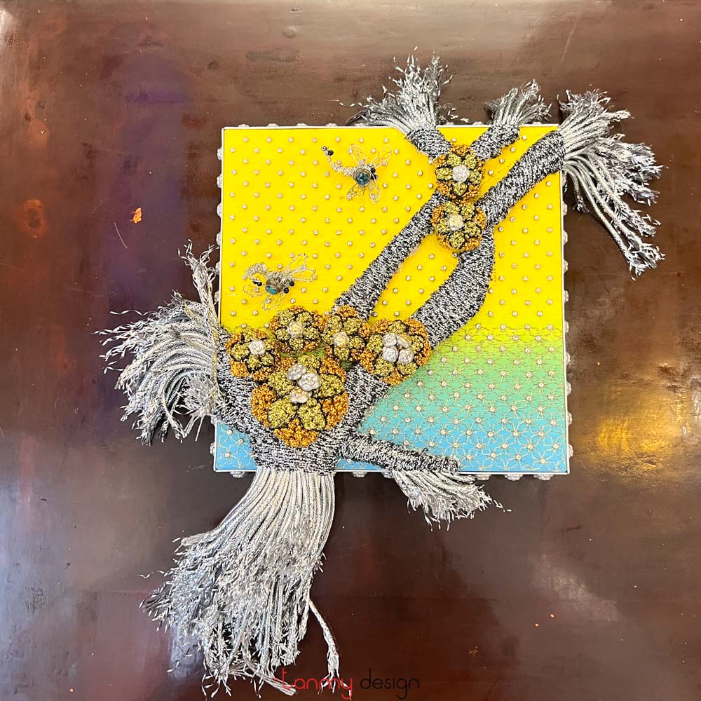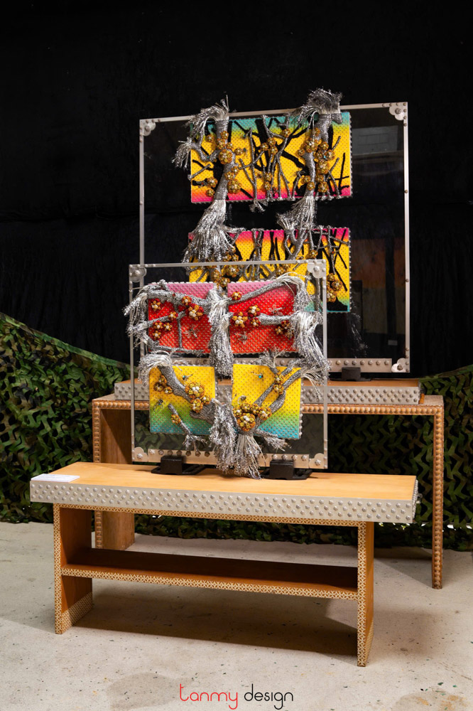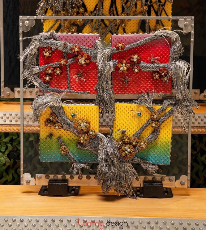 The vitality of creation and the harmony of the five elements (Ngũ Hành) are conveyed in Mai’s works through a symphony of colors and textures: the white of silver, the golden hues of brass, delicate gold leaf meticulously gilded onto hand-cast apricot blossoms, and the shimmering reds, yellows, and blues of dragonfly wings in flight. These elements paint a world uniquely her own. Alongside the masterful