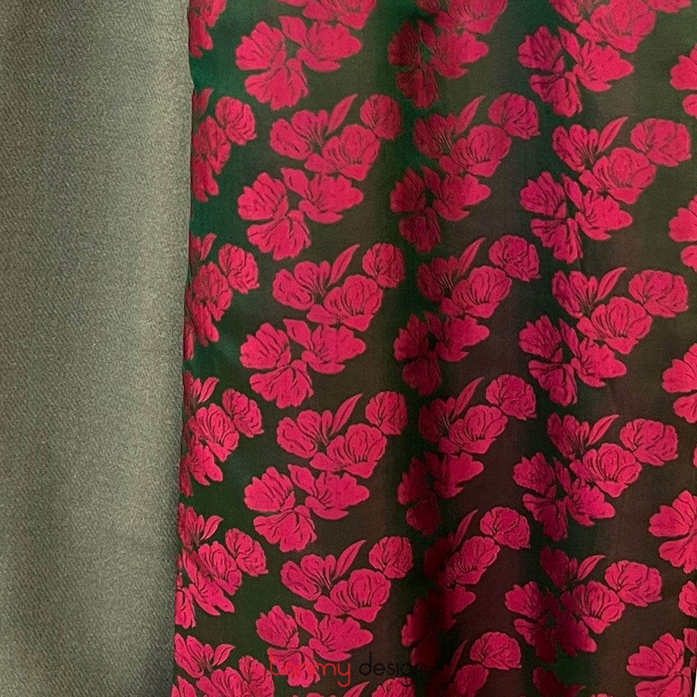 Two-layer silk pashmina scarf in dark green/fuchsia pink