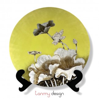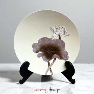 Round lacquer plate attached with eggshell lotus included with stand 25 cm ( different designs )