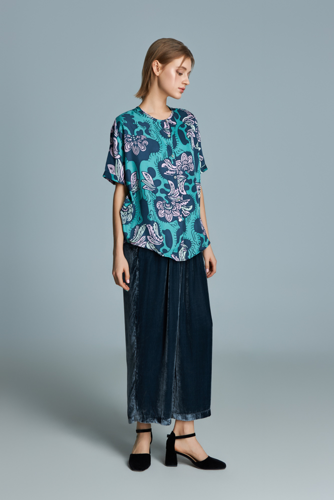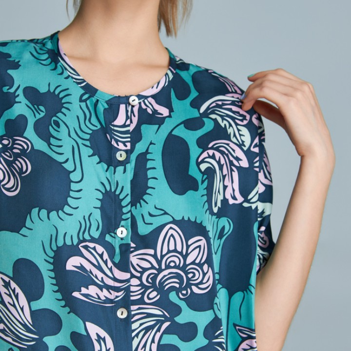 Silk shirt with pink Youth garden pattern
