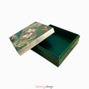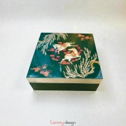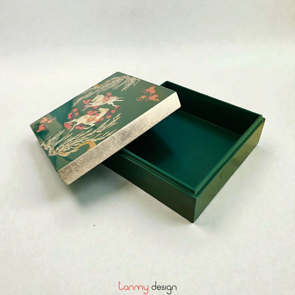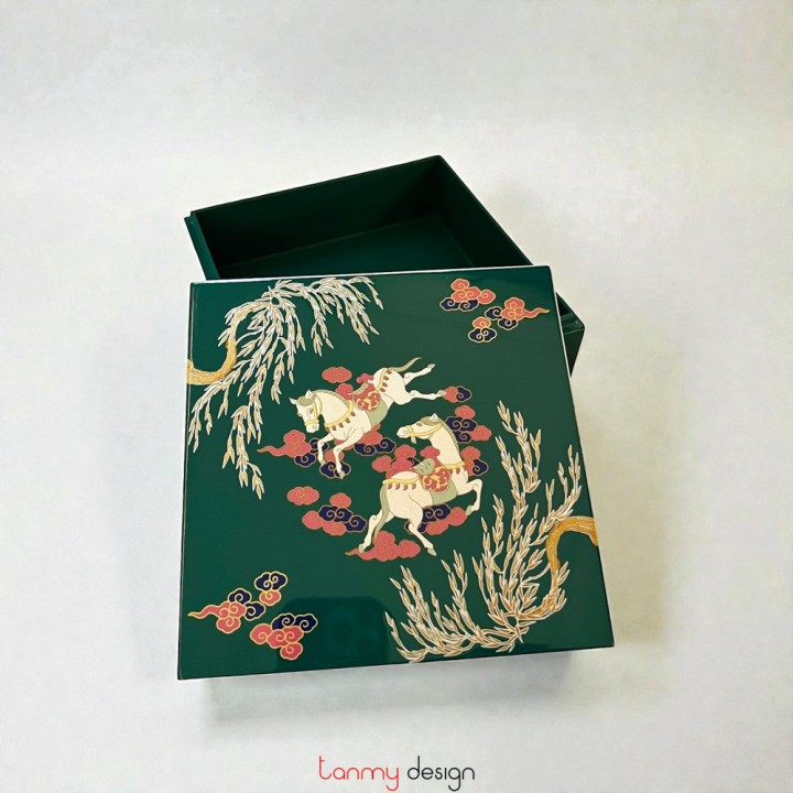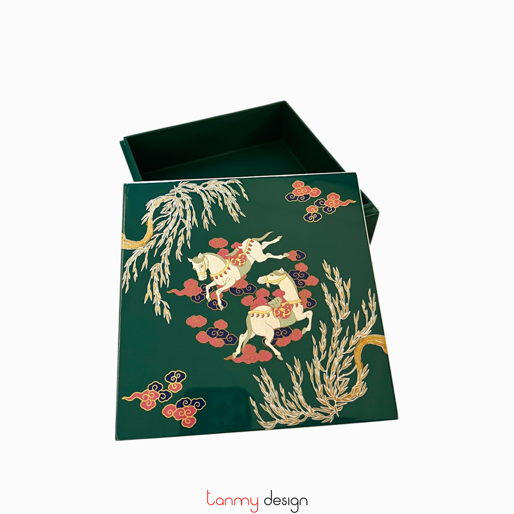 Green "Liễu Mã" square lacquer box 15x15x6 cm