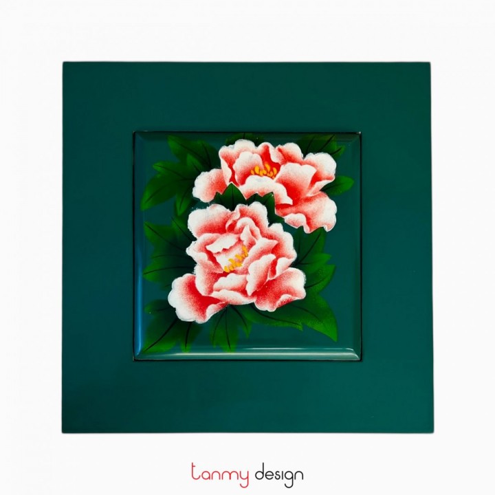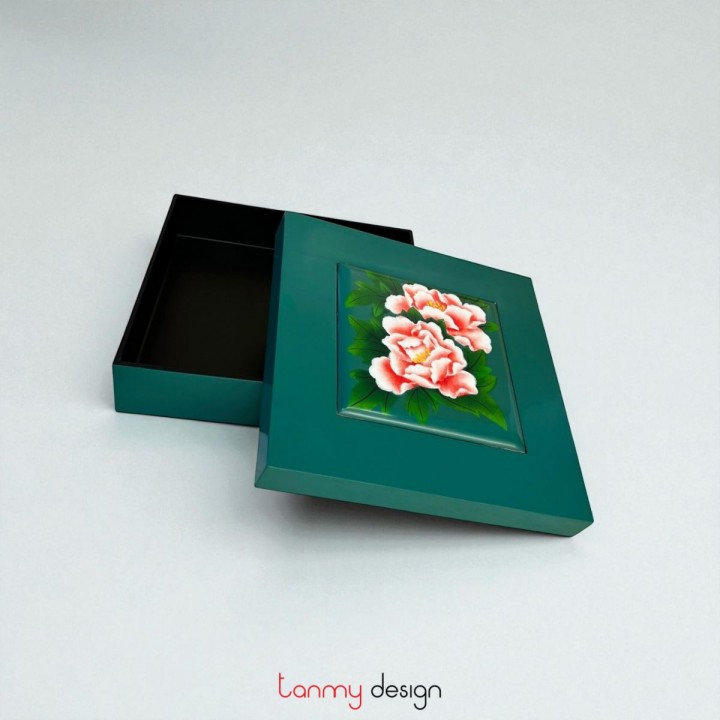 Square lacquer box with convex lid with hand-painted peony 25 cm ( different colors )