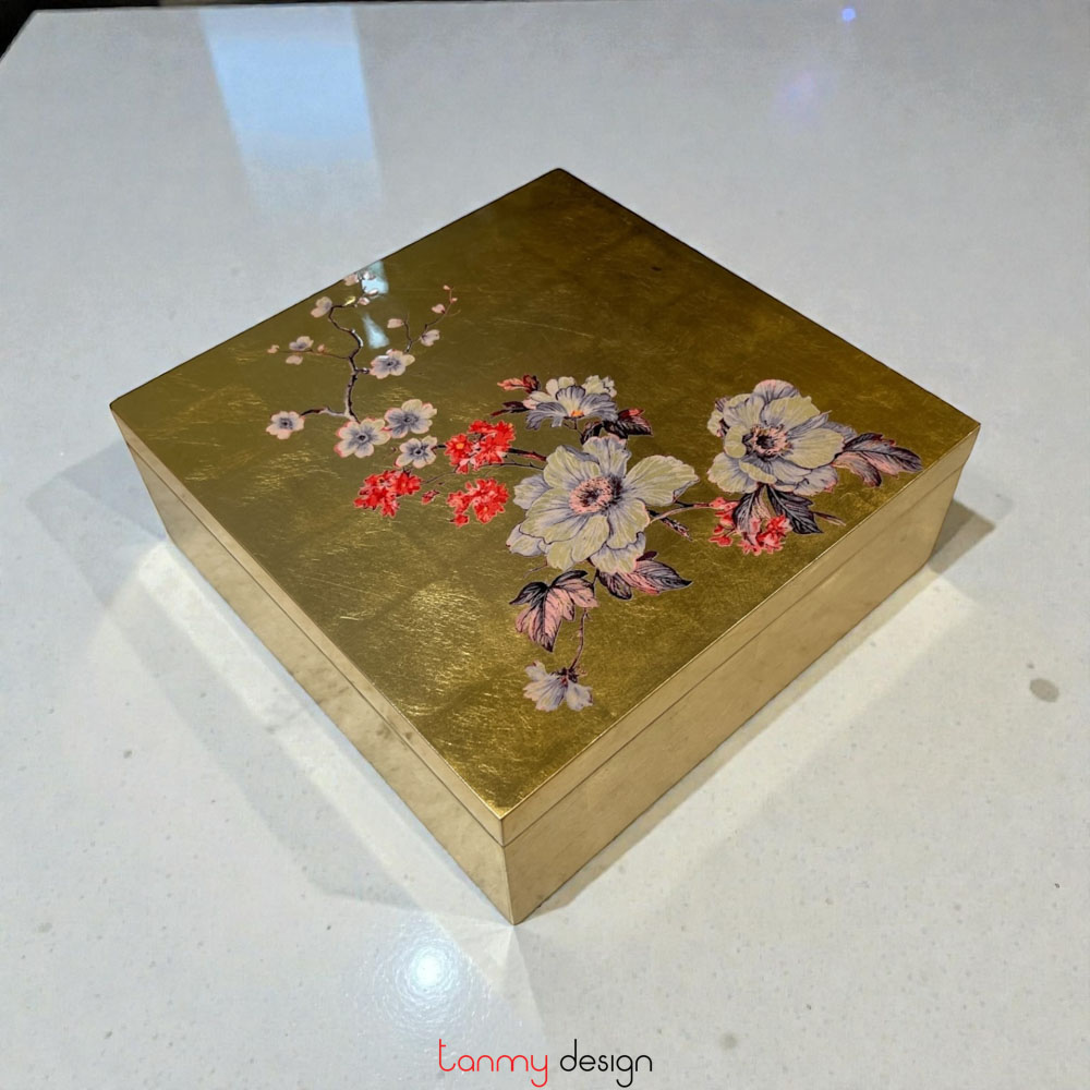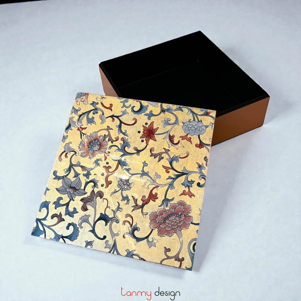 Square lacquer box with flowers 25 cm ( different designs )