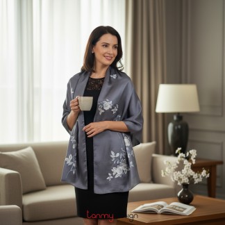 Not only a "bright star" in the literary sky of Vietnam, Nguyen Du is also a World Cultural Celebrity, known and recognized globally. The cultural legacy the poet left for posterity is exemplified by the masterpiece "Truyen Kieu," The scarf depicts the scene of the Spring Day Scene – the first encounter between Thuy Kieu and Kim Trong. The natural landscape carries the unique beauty of spring, with the vast sky and flocks of swallows joyfully soaring like a shuttle on a woven fabric frame. Two hearts, full of passion and emotion, have found a common voice gentle, tender, and discreet amid the vast and high sky