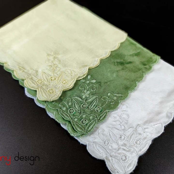 A single artisan completes each piece using meticulous stitches like satin, split, or shadow techniques - each requiring a distinct level of expertise. The handkerchief is then washed, pressed, and inspected by senior members of the founding family to ensure flawless quality.