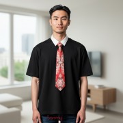 Bamboo - tie with lotus pattern arranged in the shape of bamboo shoots.