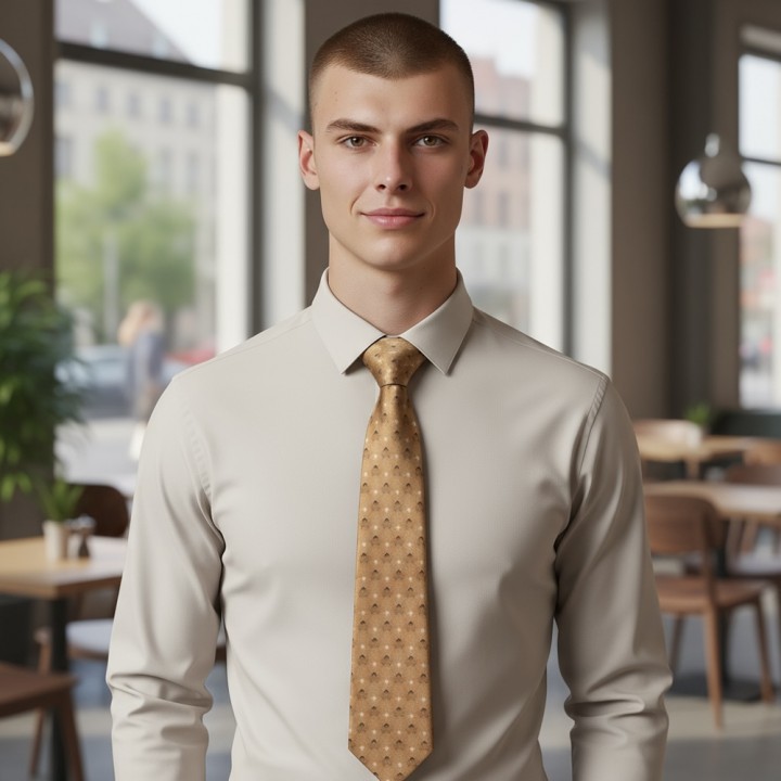 Bamboo - tie with lotus pattern arranged in the shape of bamboo shoots.