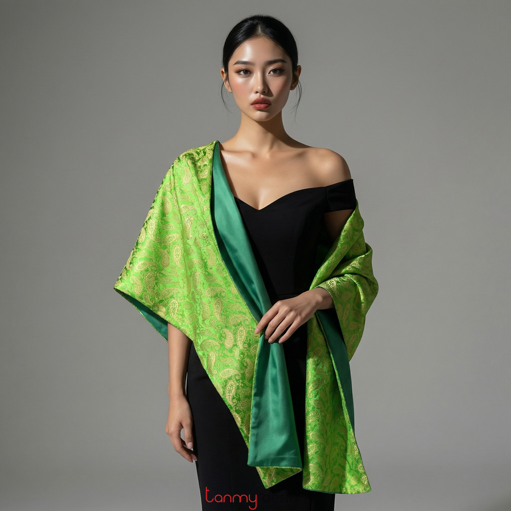 Tanmy Design’s double-sided long scarf is a luxurious creation that combines the softness of silk with the rich texture of velvet. Each piece is meticulously crafted, with one side made from smooth, hand-dyed silk and the other from plush velvet, offering both warmth and elegance. This versatile design allows the wearer to style it in multiple ways—perfect for adding a refined touch to both day and evening looks. Blending traditional craftsmanship with modern sophistication, the Tanmy Design silk and velvet scarf embodies timeless beauty and Vietnamese artistry.