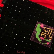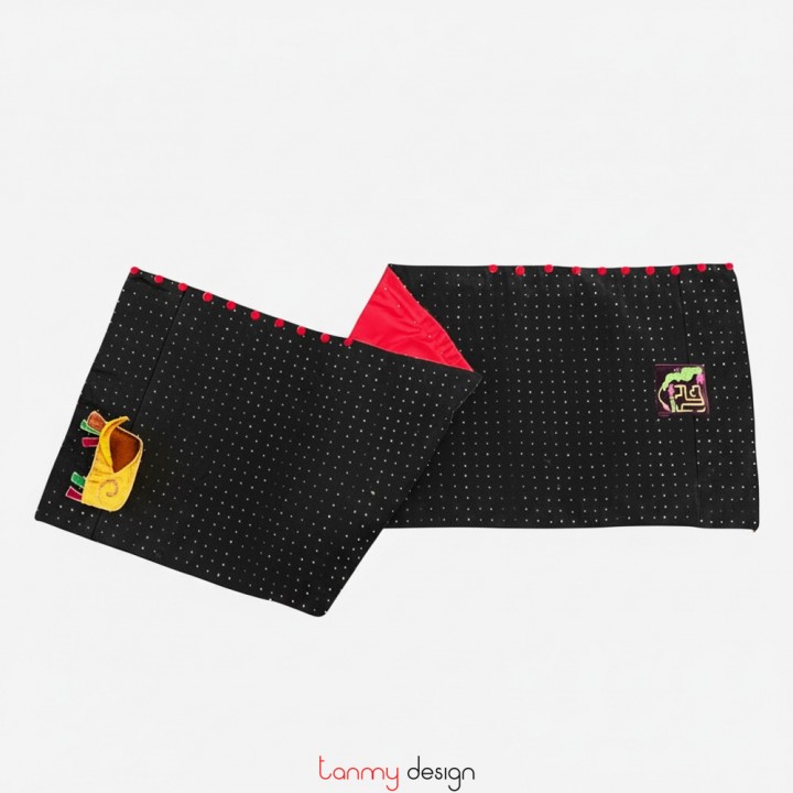 Quilted silk velvet scarf in red and black