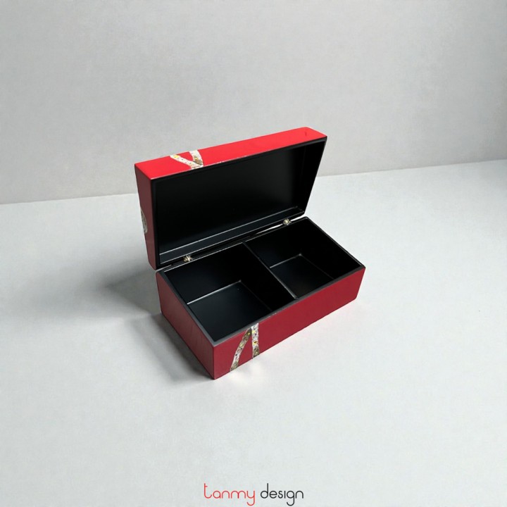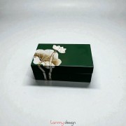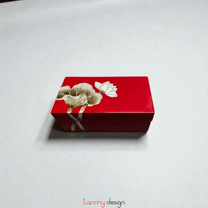 Hộp sơn mài chữ nhật 2 ngăn vẽ sen 8*14*H5cm ( các màu )