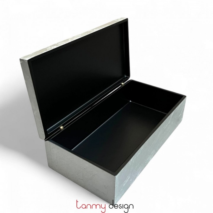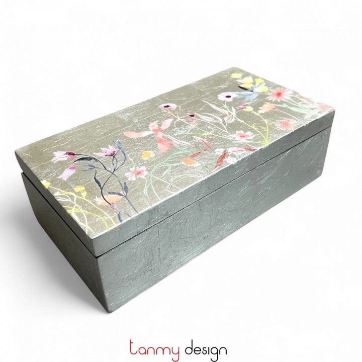 Hộp sơn mài chữ nhật dán bạc vẽ hoa 12*23 cm ( các mẫu )
