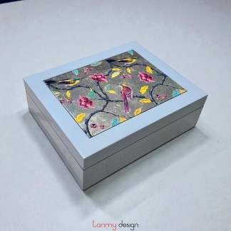 Hộp sơn mài chữ nhật đỏ khắc tranh phố cổ 8 ngăn trong 27*30cm