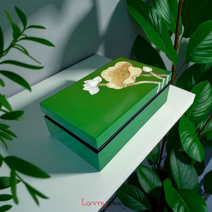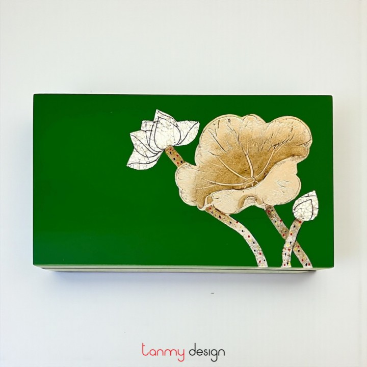 Hộp sơn mài chữ nhật vẽ hoa sen 14*24cm