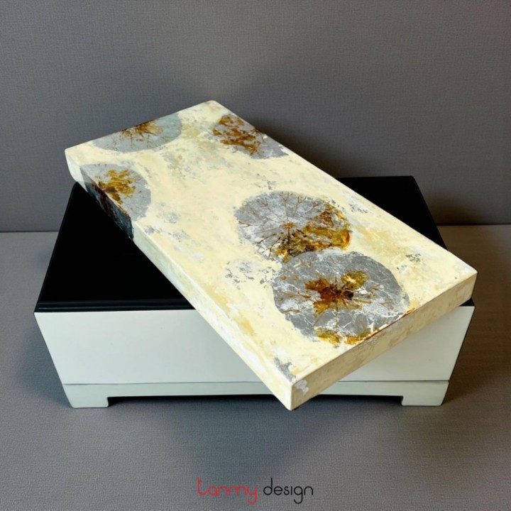 Hộp sơn mài chữ nhật vẽ lá sen kèm đế 18*35cm ( các mẫu )