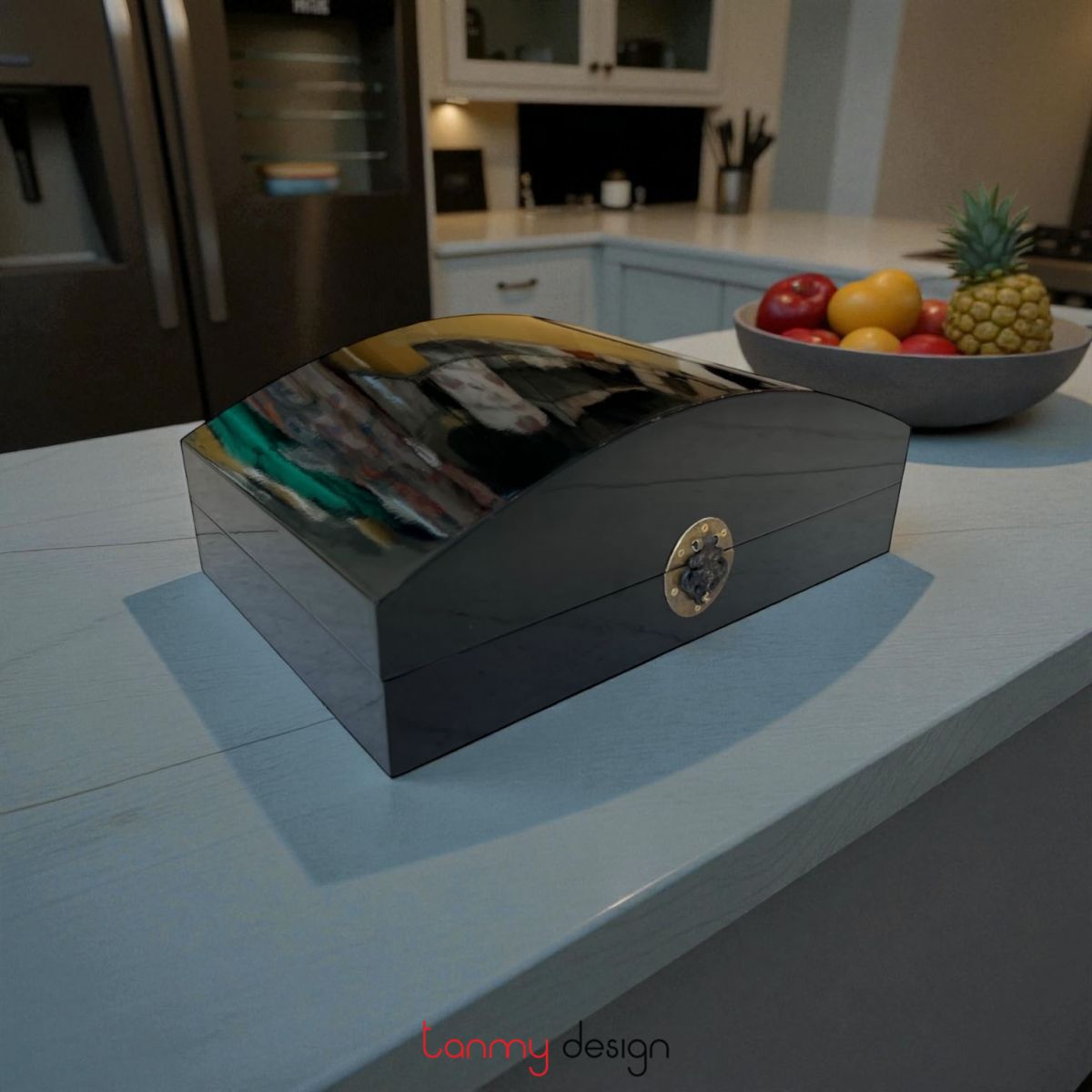 Hộp sơn mài cong trơn đen 24*37cm