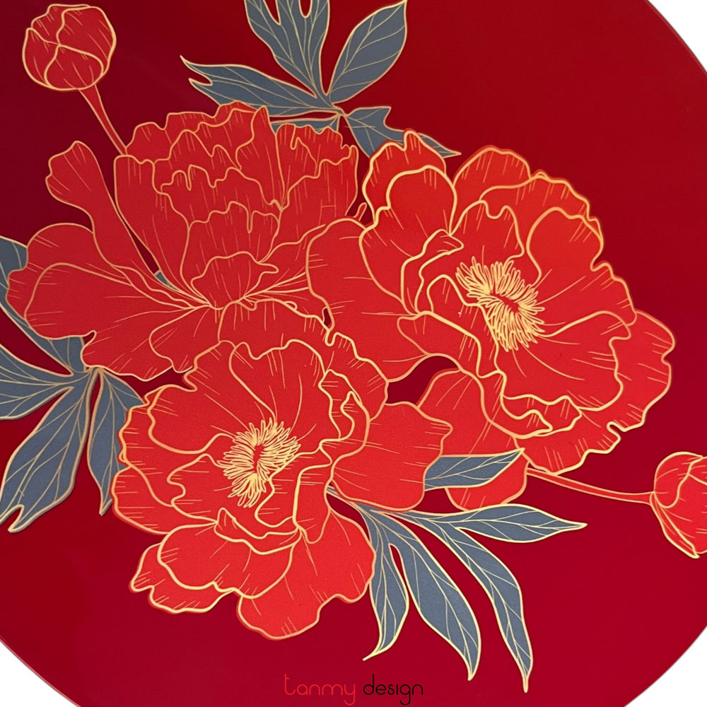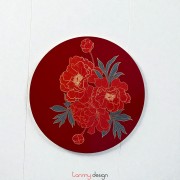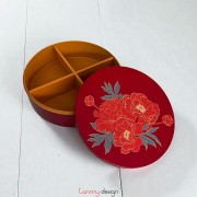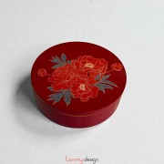 Hộp tráp tròn sơn mài đỏ vẽ hoa 25cm