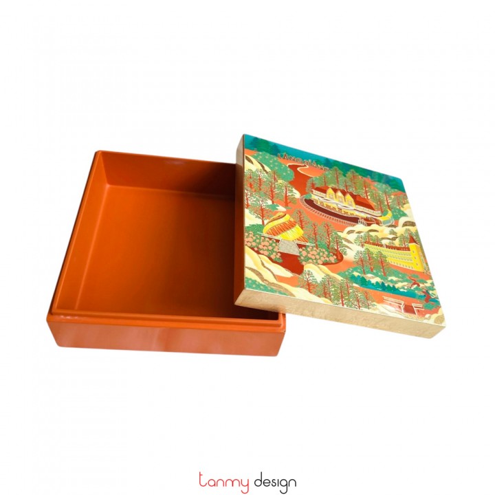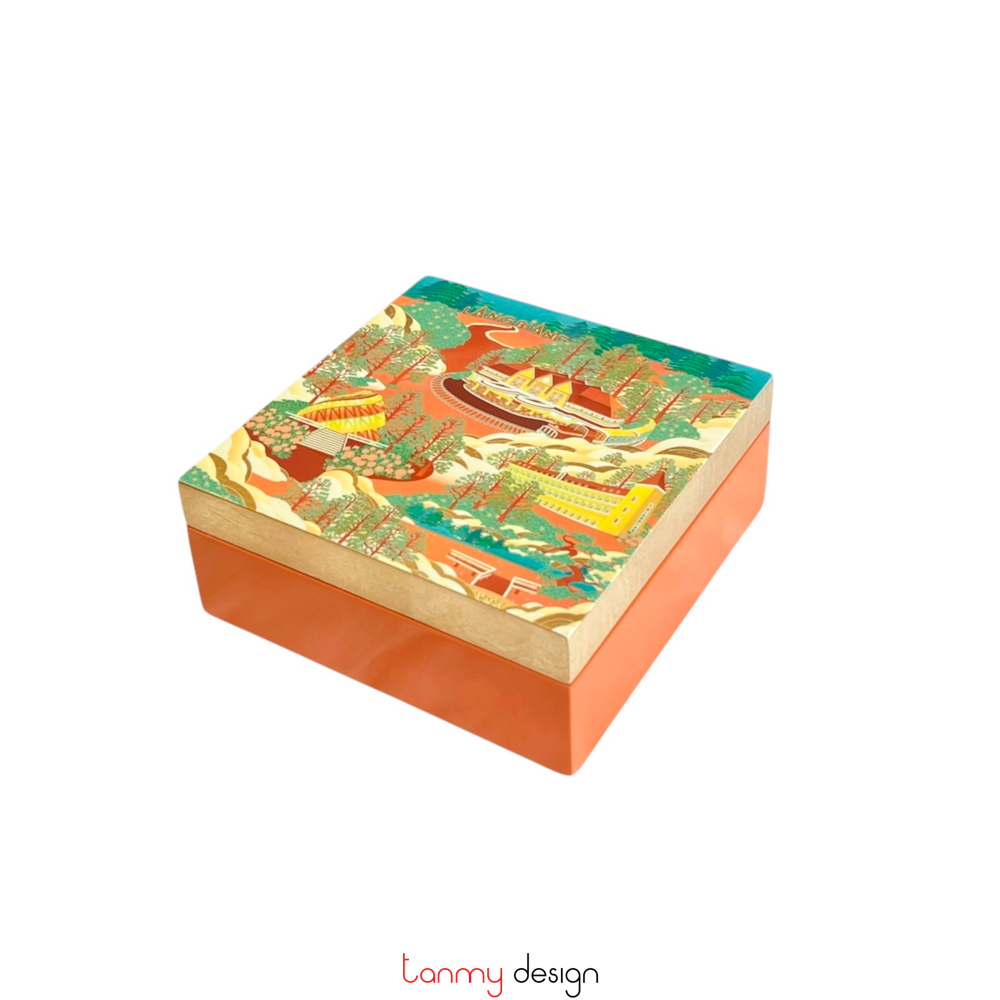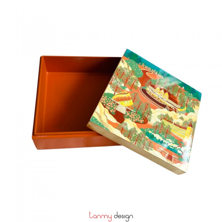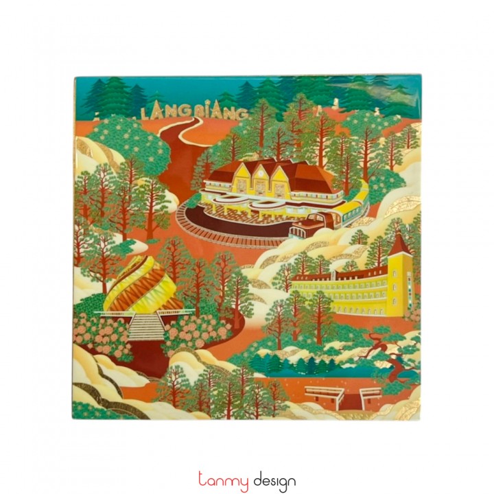 Hộp sơn mài họa tiết Ga Đà Lạt 15x15x6 cm