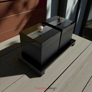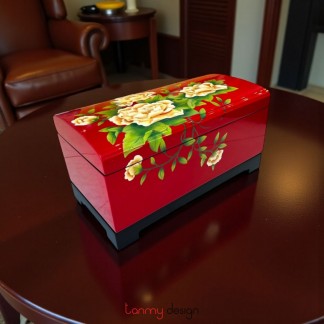 Hộp sơn mài vuông đỏ nắp gắn tranh sơn mài hoa sen 25xH10 cm