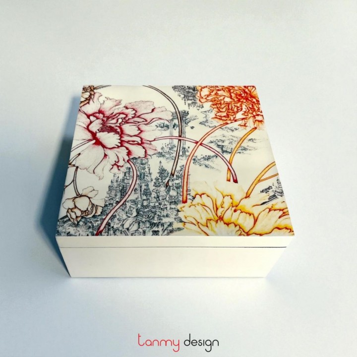 Hộp sơn mài vuông vẽ đề tài 20*H9 cm ( các mẫu )