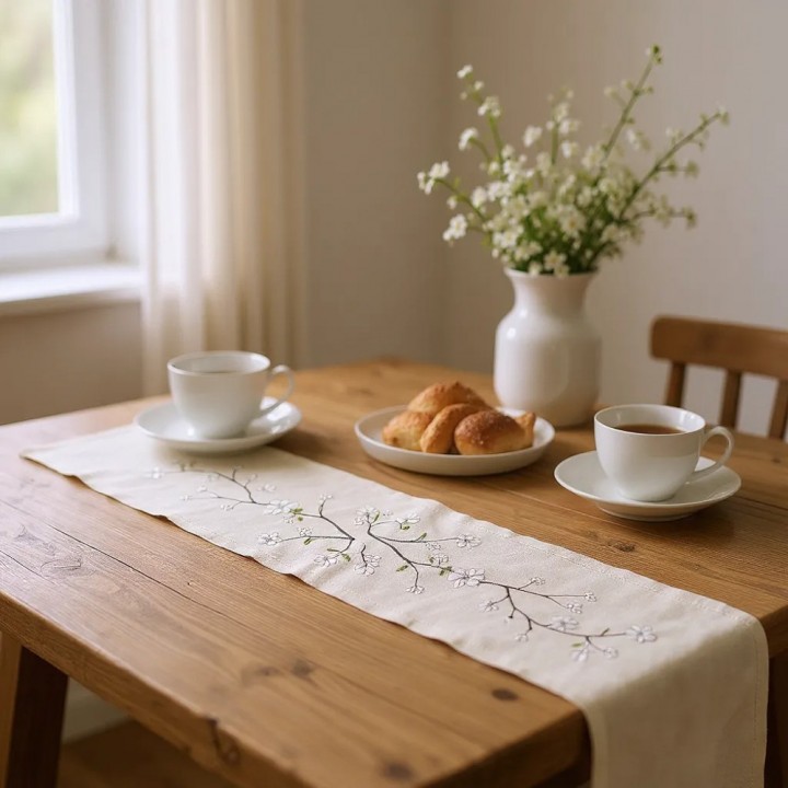 ữa cơm nhà nấu luôn là điều chiếm trọn trái tim của mỗi thành viên trong gia đình không chỉ bởi những món ngon nhà làm mà còn bởi những khoảnh khắc yêu thương, đầy ắp tiếng cười trong bữa ăn không gì sánh bằng. Một không gian được trang hoàng với table runner thêu tay Tân Mỹ Design sống động như một bức tranh trên bàn ăn gia đình sẽ khiến bữa cơm nhà thêm trọn vị yêu thương từ phần nhìn đến phần thưởng thức.