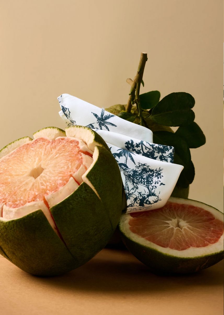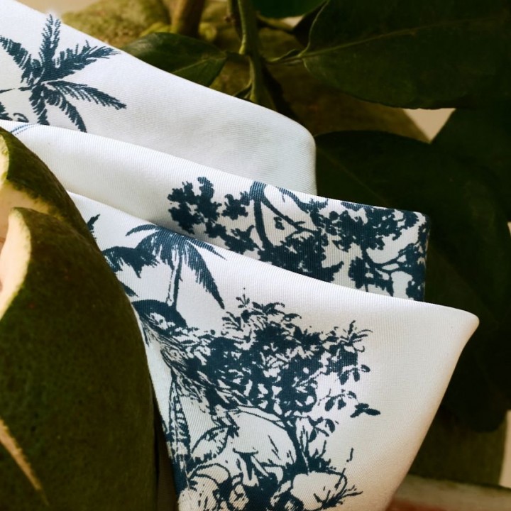 Vải lụa của chúng tôi được sản xuất tại địa phương trong điều kiện thuận lợi tại Việt Nam bởi các nghệ nhân lành nghề. Các mẫu toàn bộ được in bằng tay.